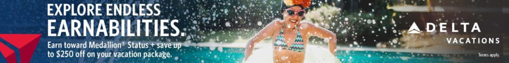 This summer, Delta Vacations invites you to explore how far your miles can take you. For a limited time, SkyMiles® Members can save up to $250 per booking, while earning miles and progress toward Medallion® Status. The primary passenger will earn toward Status on flights, hotels, rides and activities! Just book by August 31, 2025 with you CTG Advisor, for travel through December 31, 2025.*terms and conditions apply