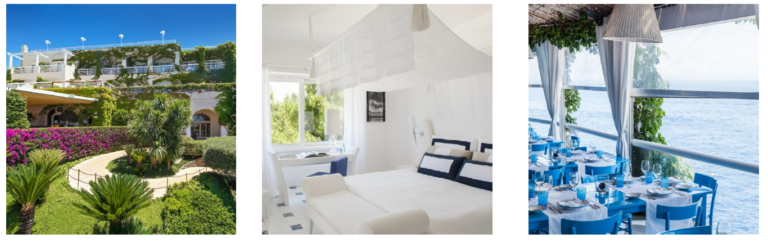 A trip to Capri simply isn’t the same without a stay at Jumeirah Capri Palace, where you can take in stunning water views and beautiful design. Immerse yourself in breathtaking contemporary art, relax by the outdoor pool, indulge in Michelin-starred cuisine, enjoy the exclusive beach club, and unwind at the award-winning spa-all at Jumeirah Capri Palace. You can’t beat the signature blue decor and a meal at Il Riccio, with endless ocean views next to the Blue Grotto.