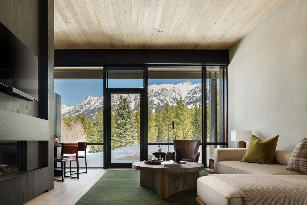 After a day on the slopes, retreat to interiors that feel both warm and architecturally striking. Guest rooms and suites feature natural wood, stone accents, and expansive windows framing snow-covered peaks. Freestanding cabins offer added privacy, ideal for families or small groups seeking space to unwind.