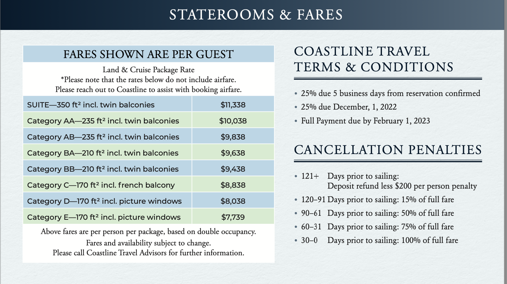 Statee Rooms and Fares